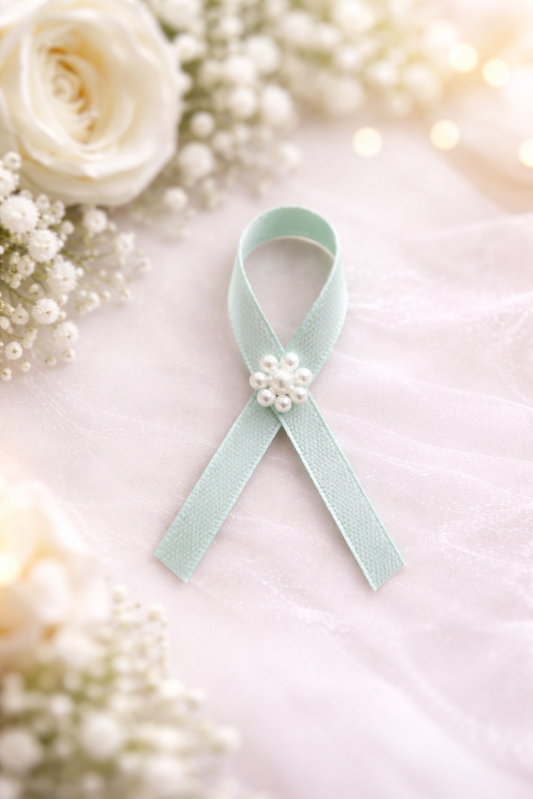 Vývazek je vyroben z mátové saténové stuhy elegantně přeložené do tvaru mašličky. Uprostřed ho zdobí jemná kytička z malých perliček, která dodává celému vývazku romantický a slavnostní vzhled. Jemný mátový odstín je ideální volbou pro svatby v pastelových tónech a krásně ladí s bílou, krémovou nebo zelenou výzdobou. Špendlík pro připnutí na oděv je již součástí vývazku – stačí jen připnout a je hotovo. |