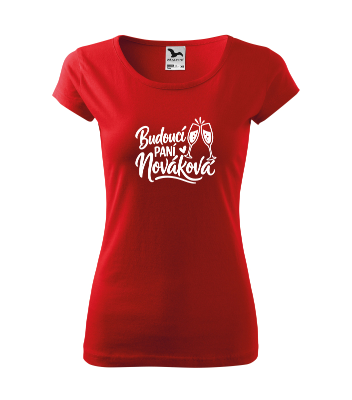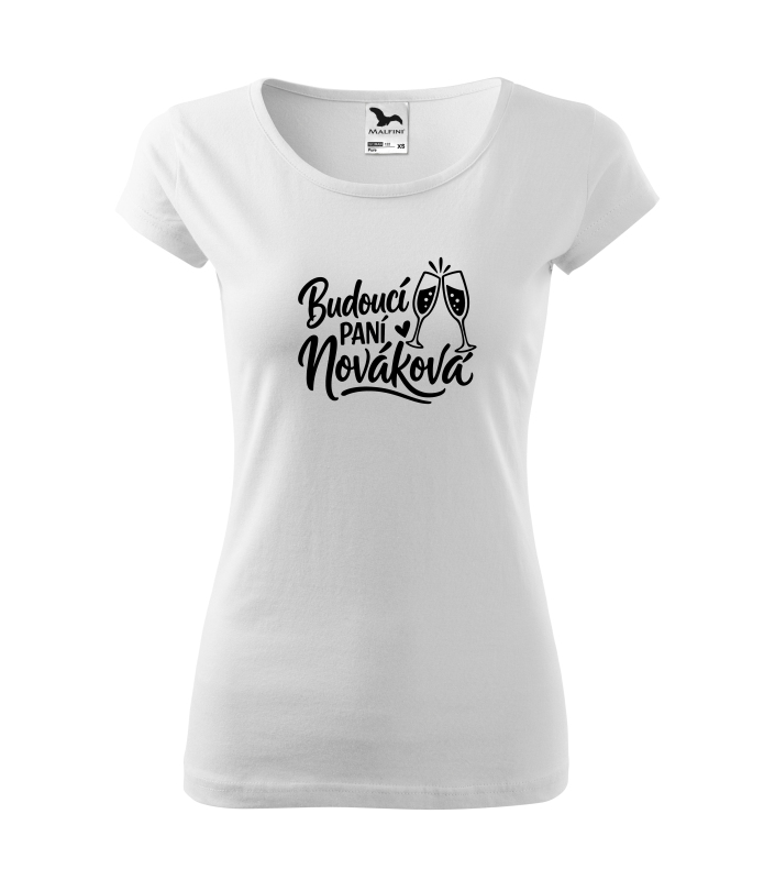 Motiv „Budoucí paní + příjmení“ je navržený tak, aby bylo možné doplnit budoucí příjmení nevěsty přesně podle přání. Díky tomu vznikne originální tričko, které je vytvořené přímo pro konkrétní rozlučku se svobodou. Motiv se skleničkami dodává tričku slavnostní a veselý charakter, který se skvěle hodí k atmosféře celé oslavy. |