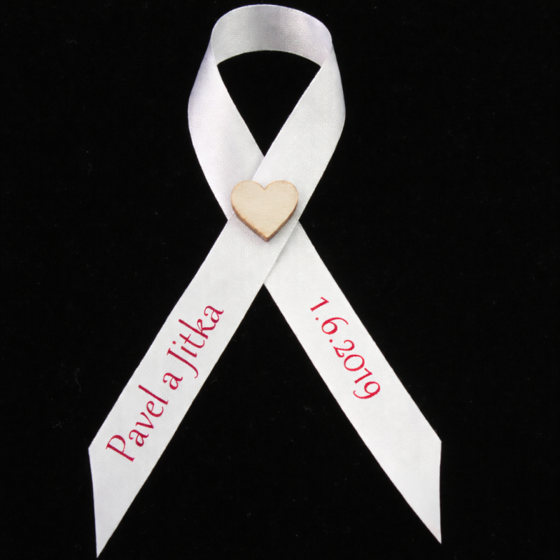 Vývazek s potiskem krásně naváže na Vaši svatební výzdobu a zároveň hostům jasně připomene, že jsou součástí výjimečného dne. Text lze upravit přesně podle Vašeho přání – jména, datum, krátký vzkaz nebo třeba poděkování. |