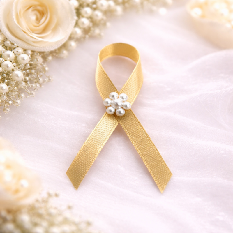 Vývazek je vyroben ze saténové stuhy ve zlaté barvě, která je elegantně složená do klasického tvaru mašličky. Dominantou je jemná kytička z perliček, která dodává celému doplňku slavnostní a sofistikovaný vzhled. Zlatá barva symbolizuje eleganci a výjimečnost, a proto se skvěle hodí pro slavnostní svatby, večerní hostiny nebo zimní obřady. Vývazek je připraven k okamžitému použití – špendlík pro uchycení je již jeho součástí. |
